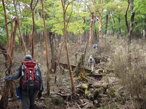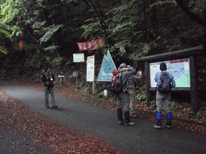 石塚発(12:00)⇒小積ダキ(12:50-13:00)⇒見返塔(13:40)⇒林道分岐(14:15)⇒大崩山荘(14:50)⇒登山口(15:15)