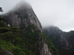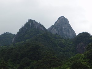 ◆下小積ダキ・象岩のワイヤトラバースヶ所 :見返の塔より見上げる小積ダキ&下ワク塚(右後方の岩肌)