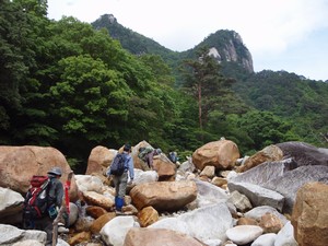 登山口発(5:50)⇒袖ダキ(8:00)/乳房岩⇒下ワク(8:45-8:55)⇒中ワク(9:10)⇒上ワク(9:55-10:20)⇒山頂(11:05)/石塚(昼食)