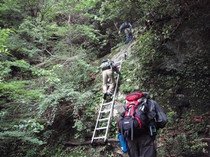 大崩山は山体が大きく岩場やハシゴ場が連続し所用時間を要します。