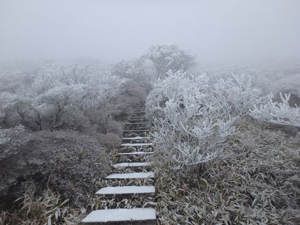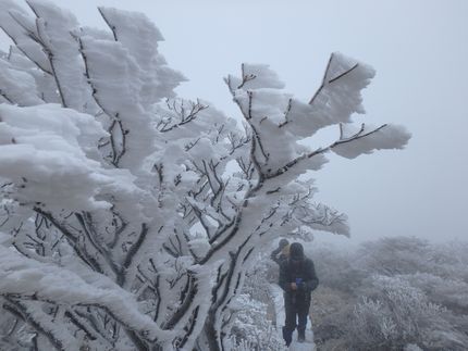 みぞれ混じりの強風雪に耐えながら樹氷を堪能(鹿児島県霧島市)