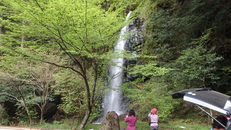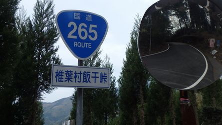 | ▼飯干峠は休憩広場になっています。 | ▼国道265号沿いの『野地の滝』です。 | |