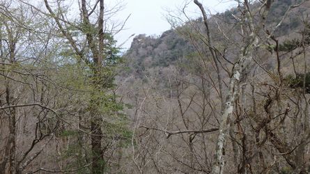| ▼振り返り望む、バクチ石です。 | ▼馬口岳鞍部から、1558mピークへ標高差、200m以上の登りです | |
