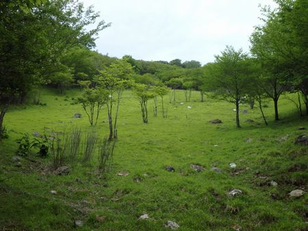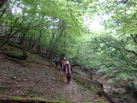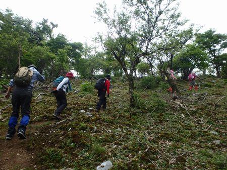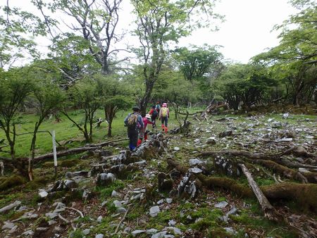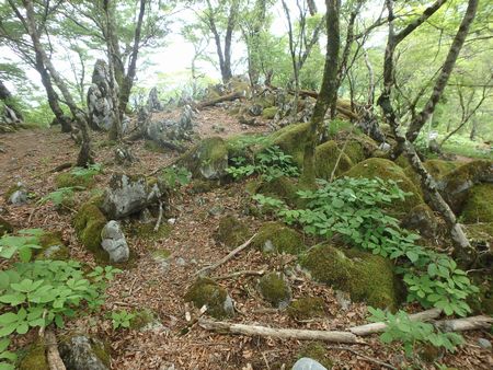 | ▼ドリーネから引き返して再びの左中将居住跡です。 | ▼左中将居住跡から御池登山口へ下山します ※以前のルートは崩壊して巻き道が出来ました。 |