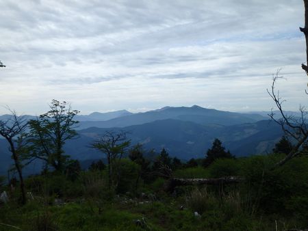 村道沿いの時雨岳登山口より時雨岳へ登った後、時雨岳から白鳥山〜銚子笠稜線へ伸びる林道を終点まで歩き県境の登山ルートへ合流する。