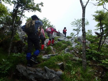 | ▼時雨岳からのコースに合流しました。 | ▼南面の展望が良い白鳥山の岩場へ到着です。 | |