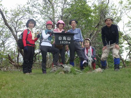 | ▼白鳥山山頂へ向います。 | ▼白鳥山(1639m)山頂へ到着(昼食休憩) | |