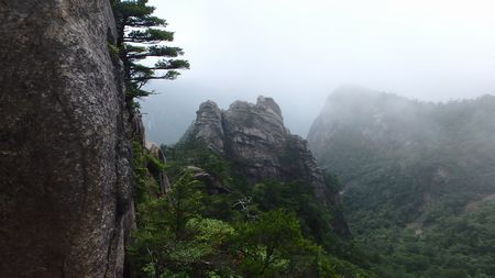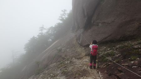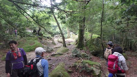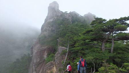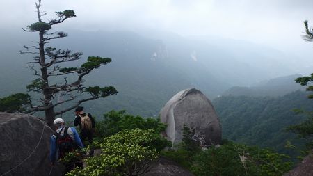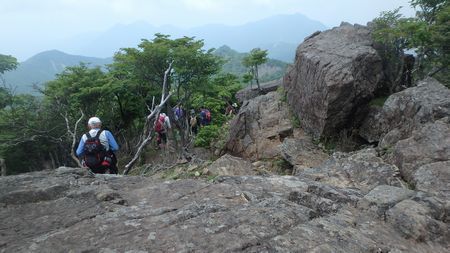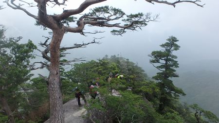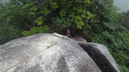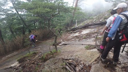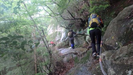 | ▼坊主尾根のロープを下ります | ▼象岩下のワイヤトラバースは慎重に通過しましょう。 | |