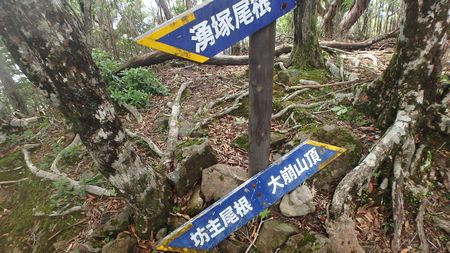 | ▼上ワクより望む、中ワク塚〜小積ダキ | ▼山頂へ向うと、坊主尾根コースと合流します。 | |