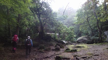 登山口発(5:45)⇒大崩山荘(6:10)⇒ワク塚分岐渡渉(6:32)⇒袖ダキ(7:55)⇒下ワク(8:46)⇒中ワク(9:05)⇒上ワク(9:50-10:15)⇒リンドウ丘分岐(10:21)⇒坊主尾根合流(10:40)⇒石塚(11:01)⇒大崩山(11:08)⇒)石塚で昼食・発(11:45)⇒ワク塚分岐(12:02)⇒リンドウ丘分岐(12:14)⇒小積ダキ(12:30-12:43)⇒象岩下(12:56)⇒林道分岐(14:08)⇒渡渉ヶ所(14:35)⇒大崩山荘発(14:51)⇒登山口(15:15)
