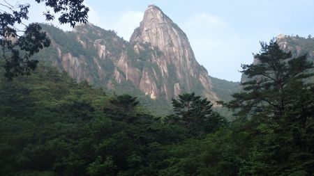 ▼登山口へ向う途中で目にする大崩山全景 | |