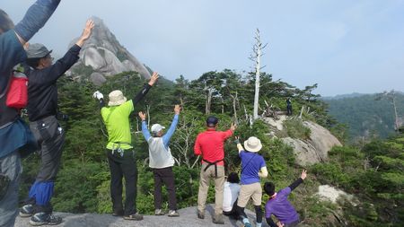 | 梅雨の晴れ間に、ワク塚の岩峰に上がり圧巻の眺望と清楚な香りのササユリを堪能しました。 上ワク塚一帯では小規模ながらオオヤマレンゲの群生も見られます。 雨続きでヤキモキしましたが、皆さんの思いが通じて晴れ間が広がり楽しい山歩きになりました。 ご参加いただいた皆様、ありがとうございました(感謝!) |