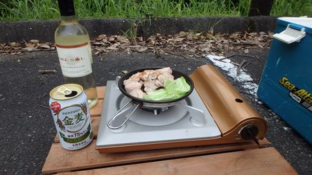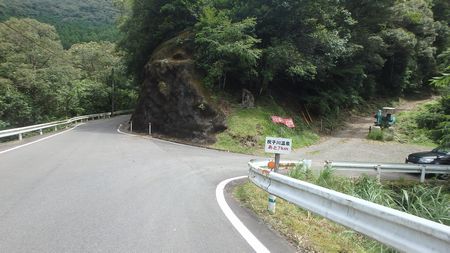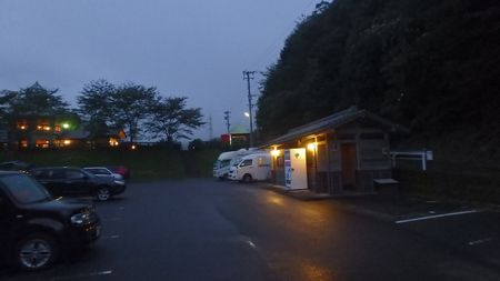 | ▼祝子川温泉の下方駐車場をお借りして車中泊です。 温泉に設置の募金箱(清掃協力金)に募金しました。 |