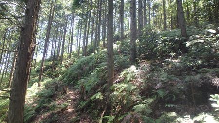 | ▼作業道をたどり和久塚を目指します。 作業道は稜線ピークをまいているので常に地図と照合しましょう! |