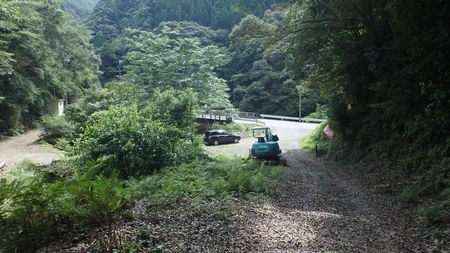 | ▼県道207号沿いの林道入口に駐車して徒歩で上がります。 (林道入口にチェーンが張られて車の進入は不可です) |