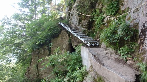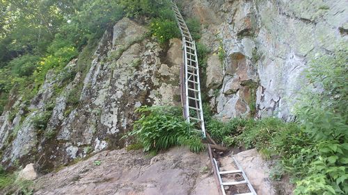 | ▼上高地から焼岳へのルートでの注意ヶ所、2連ハシゴ | ▼2連ハシゴを過ぎると現れる、鉄製の踏板の通過も注意しましょう。 (落ちたら重大事故になります) |