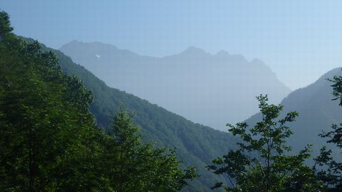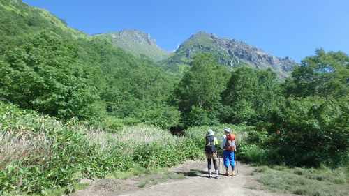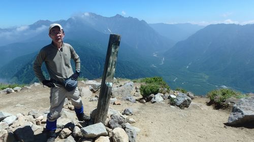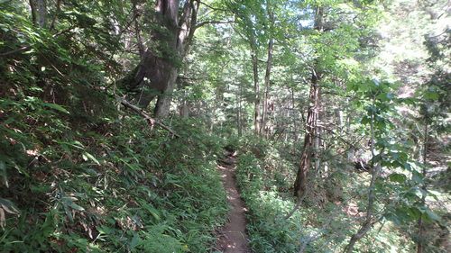 | ▼登山口から見えるのは、奥穂高岳〜前穂高に明神岳でしょうか | ▼車道歩きから、山道へ入り登ります | |