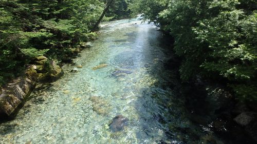 | ▼田代橋から望む、梓川の清流 上高地バスターミナルは直ぐですが今回は宿の有る明神池へ向います |