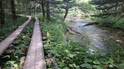 ▼梓川の右岸を歩いて、明神池へ向います。 遊歩道が整備されて散策気分で歩けます。 |