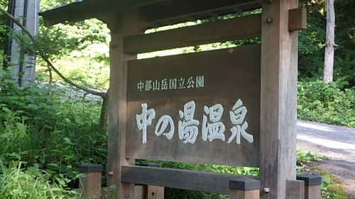 ▼約30分で『中の湯温泉』の建物を左に見ます | |