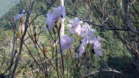 | ▼薩摩の刀剣山に咲く、サツマイナモリの白い花 | ▼刀剣山に咲く、季節外れのアケボノツツジ (アケボノツツジの群落ヶ所が有ります) |