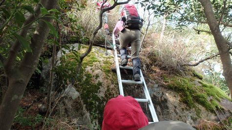 | ▼U峰からT峰へ向います | ▼T峰へハシゴを登ります | |