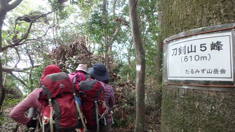 | ▼刀剣山縦走コースは4峰〜6峰を経由して猿ヶ城林道へ下るロングコース | ▼刀剣山 5峰(610m) アップダウンを繰り返します |