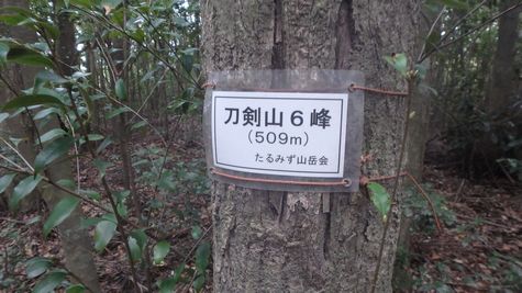| ▼展望の無い樹林帯を下ります | ▼刀剣山 6峰(509m)を通過 | |