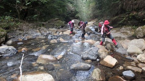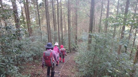 | 天気が良く楽しい山歩きになりました♪ ご参加いただいた皆様ありがとうございました! 猿ヶ城キャンプ場の手前には、宿泊施設を備えた、猿ヶ城ラドン療養泉や森の家が有ります。 |