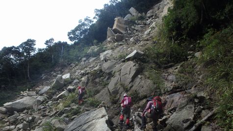 ▼落石です・・・・林道の面影が有りませんね (※平蔵の滝から廃屋の山小屋まで通行止め) |