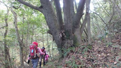 | ▼巨岩の丘から5合目へ向う途中で巨木を見ます | ▼登山道の5合目で本道と合流します | |