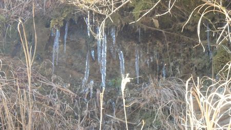 | ▼北方に、だき山が指呼の間 | ▼林道脇に、つららが下がっています | |