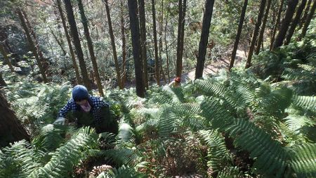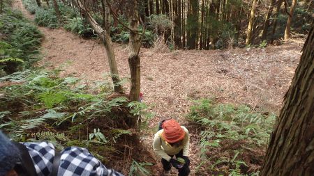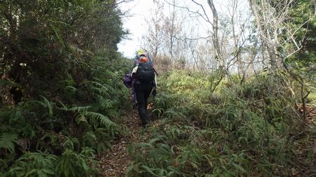 | ▼宇和田トンネル南口から岡富山へ延びる林道を歩きます | ▼岡富山から西方へ延びる尾根へ取り付きます | |