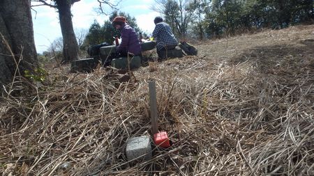 | ▼稜線を横切る林道から標高差約30m低い茶臼山へ向います | ▼林道から下って登ると茶臼山山頂です | |