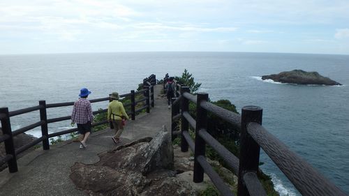 | 観光バスが到着すると大勢の観光客が降りてきて遊歩道の方へ歩いて行きました。 雄大な景色を眺めていると心が落ち着き小さな?悩みなどは吹き飛んでしまいそうです〜山も良いけれど海も良いですね!♪ 大自然に感謝します!! | ||