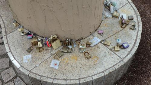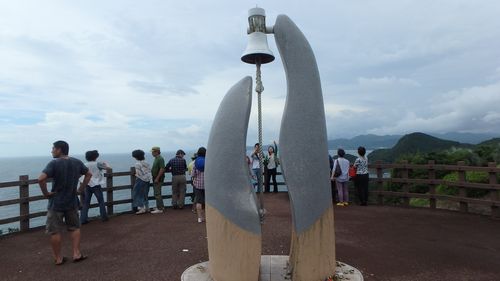 | ▼鐘の根元にはたくさんの鍵があります〜恋成就を祈願でしょうか♪ | ▼日向岬一帯を彩る、キスゲに似た花です♪ | |