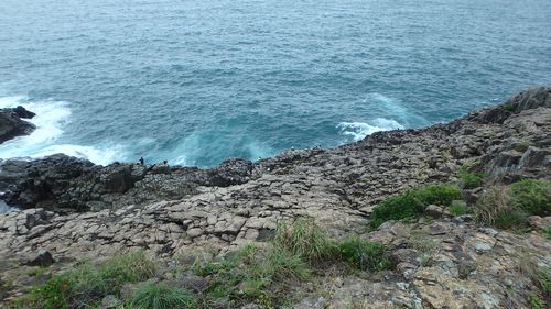 | ▼磯釣りでにぎわう、『サンポウ』です。 釣人よりハマチ他の釣果を見せて頂きました。 | ▼サンポウから望む、クルスの海です。 | |