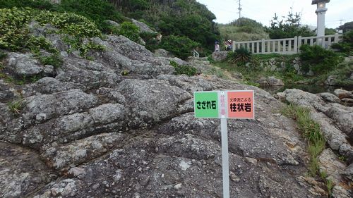 | ▼海の方から細島灯台を撮りました | ▼高さが日本一の柱状岩は溶岩が冷えて固まったようです | |