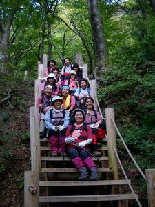 | ひな壇よろしくハイチーズ!(^0_0^) 元谷沿いのコースでちょっと並んでもらいました♪ |