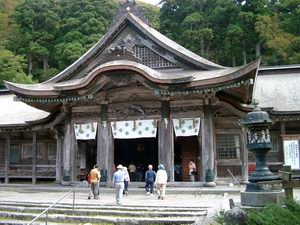 | 大神山神社奥宮 ・大神山とは大山の古名で大国主命を祭り神殿は文化2年(1805年)の建立といわれる権現造りである。 ・参道の途中にある神門は門の表裏が反対になっている「後向き門」を持つ珍しい社(重要文化財) |