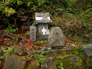 | 夏道コース五合目に安置される山の神 ・この場所には以前遥拝所があり登山者が東の尾根から昇る日の出を拝んで登山の安全を祈願していた場所だそうです。 |