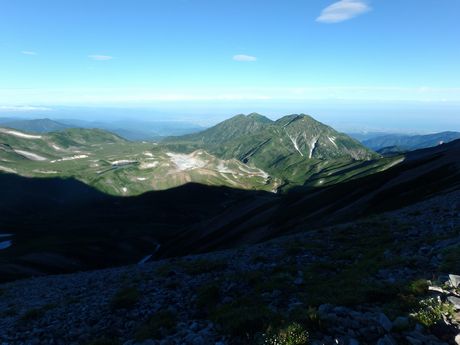 ▼8/22)雄山から望む、後立山連峰 白馬岳〜五龍岳〜鹿島槍ケ岳 |