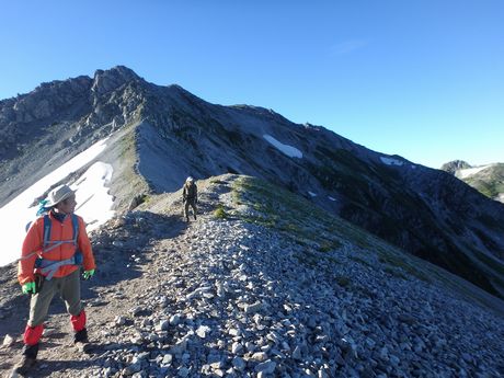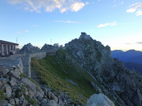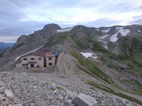 ▼8/22)剣山荘が見えてきました。 剣山荘へ不要な荷物を置いて山頂へアタックします。 |