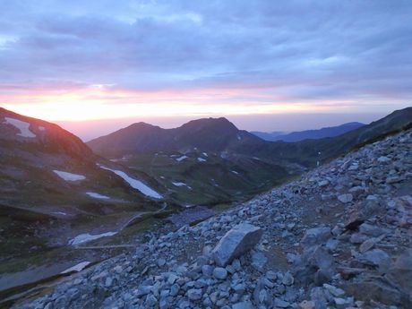 ▼8/21)一ノ越から望む、室堂&大日岳・・・夕日 |