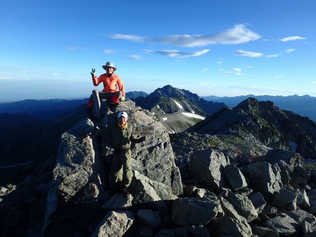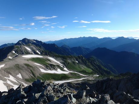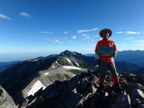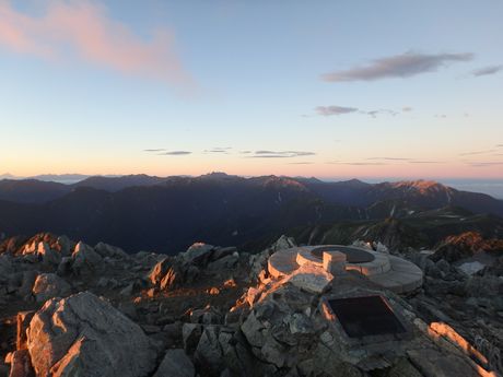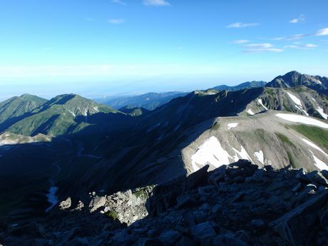 ▼8/22)雄山から薬師岳〜黒部五郎岳、槍ヶ岳〜穂高連峰を眺望 |