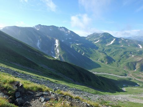 ▼8/23(土)_左方に立山を見ながら室堂乗越へ下ります。 |
