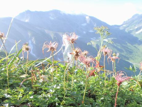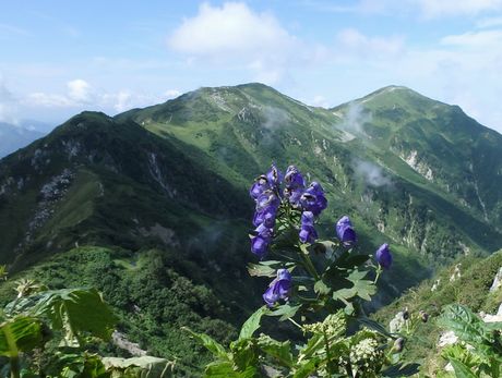 ▼トリカブトの花越しに望む、中大日岳&大日岳 |