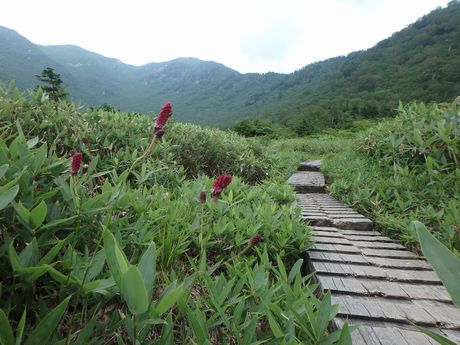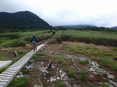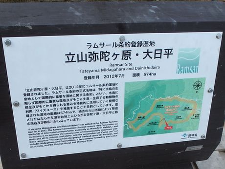 ▼大日平はラムサール条約に登録された湿地帯です。 環境保護のため木道が設置されています。 |