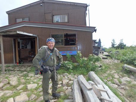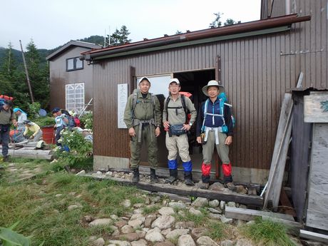 | ▼8/24(日) 下山は山荘のご主人に見送られて出発♪ 今回、25畳の部屋を我々3名で貸切でした |