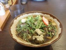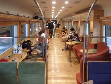 ▼立山で山菜ソバをいただき、電鉄のサロンカーで富山駅へ |